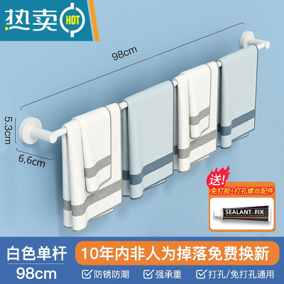 敬平免打孔白漆单杆黑色毛巾架卫生间浴室拖鞋置物架厕所厨房抹布收纳 素雅白单杆-98cm浴室置物架