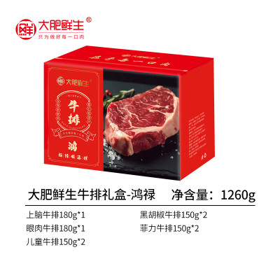 大肥鲜生[实物/礼券]大肥鲜生肉类礼盒 大肥鲜生牛排礼盒-鸿禄