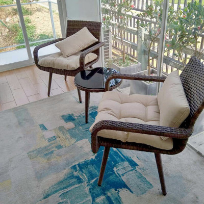 紫叶阳台休闲桌椅藤椅茶几三件套组合沙发椅单人现代简约一桌两椅
