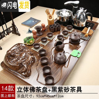 三维工匠功夫茶具套装家用整套紫砂陶瓷茶杯简约全自动电磁炉一体实木茶盘 14立体佛茶盘紫砂茶具 39件