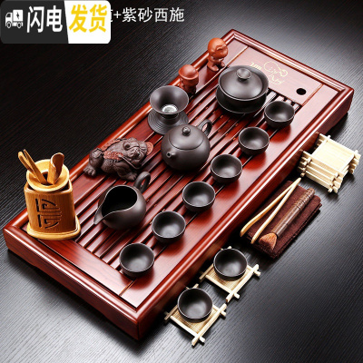 三维工匠整套实木茶盘茶具套装家用办公室紫砂功夫茶具茶盘茶台茶海排水式 红木色禅道盘+紫砂西施套装 29件