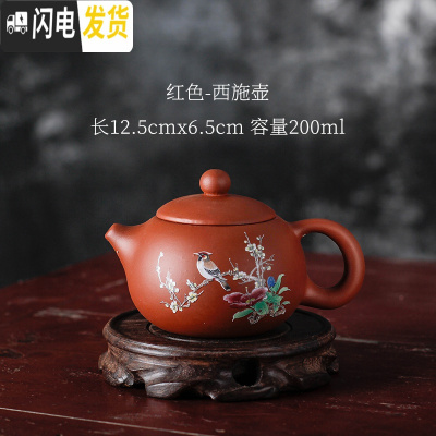 三维工匠宜兴紫砂壶单壶半手工家用功夫大容量陶瓷小号茶壶西施壶茶具套装 红色黑花鸟西施送四杯