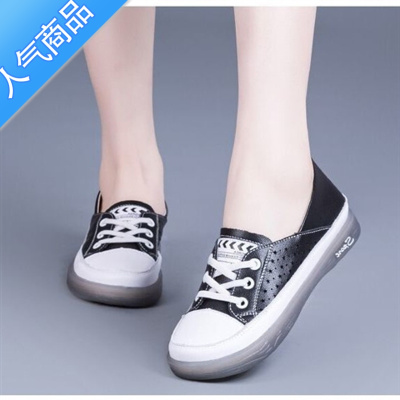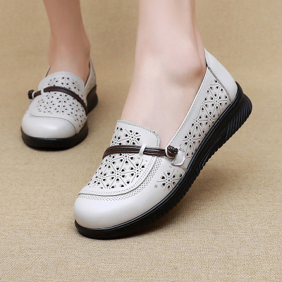 新款镂空真皮妈妈鞋圆头软底舒适百搭女式单鞋