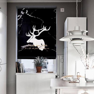 家柏饰(CORATED)升降帘卧室 北欧 简约现代大理石纹鹿头创意罗马帘窗帘定制