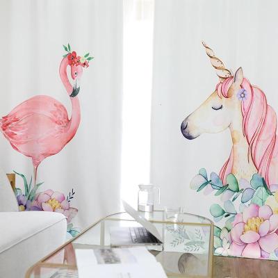 家柏饰(CORATED)创意火烈鸟独角兽遮光窗帘 北欧儿童房卧室飘窗窗帘定制