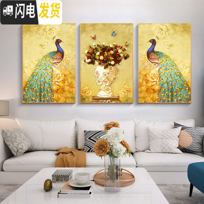 三维工匠花开富贵十字绣2019新款绣客厅家用线绣孔雀牡丹花满绣三联画欧式 生态棉3股210x90厘米满绣印花