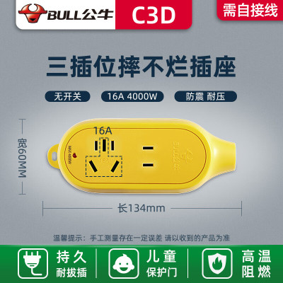 公牛(BULL)排插无线16a大功率插座4000w空调专用插板 不带线 2位防摔款 GN-C3D