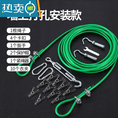 敬平晾衣绳晒被绳挂衣服阳台晒被子器架室外家用户外包塑钢丝凉衣绳 4mm粗10米长 打孔安装款(绿色)绳子