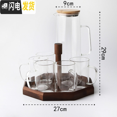 三维工匠北欧简约家用可高温防爆冷水壶 大容量玻璃果汁壶扎壶 餐厅茶壶 [洛丽塔]一壶5杯+八角托盘凉水壶