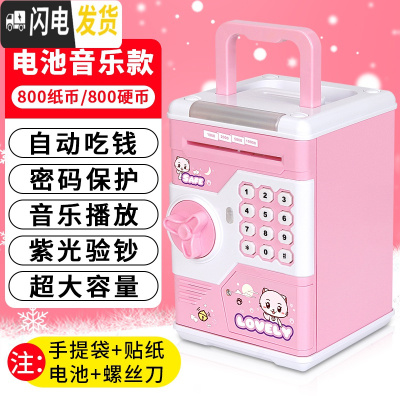 三维工匠创意存钱罐儿童六一节女防摔网红大容量保险柜密码箱储钱男孩 [自动开门]充电音乐手提款-开储蓄罐