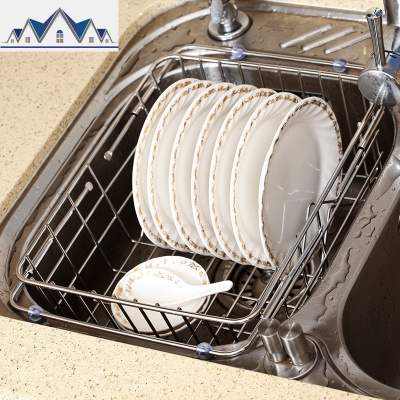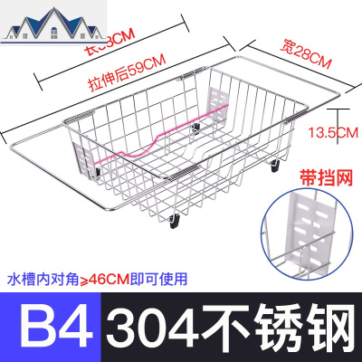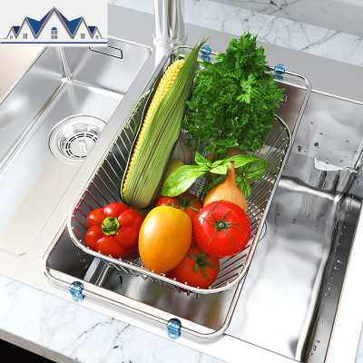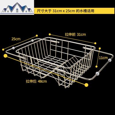 304不锈钢厨房水沥水篮家用水池洗碗碟沥水置物架可伸缩滤水篮 三维工匠