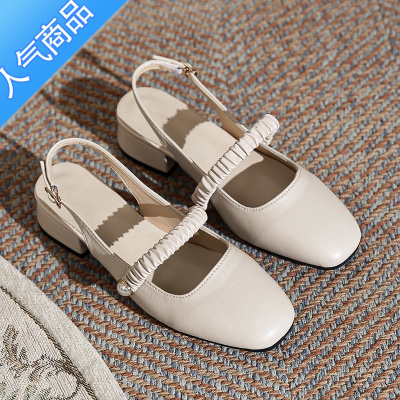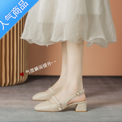 SUNTEK包头凉鞋女中跟2023年新款春夏季法式高跟鞋粗跟一字带玛丽珍单鞋