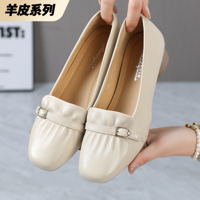 25新款春秋小单鞋真皮浅口工装四季单鞋软底防滑中跟简约百搭女鞋