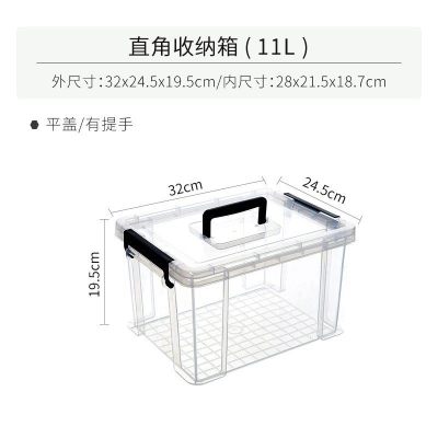 透明收纳箱大容量加厚衣柜衣服玩具 带提手11L:32*24.5*19.5cm 直角加厚