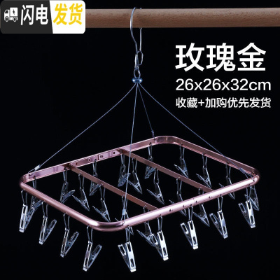 三维工匠铝合金晒架不锈钢晒架晾衣夹子晒袜架内衣裤儿童多夹子晾衣架 玫瑰金