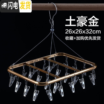 三维工匠铝合金晒架不锈钢晒架晾衣夹子晒袜架内衣裤儿童多夹子晾衣架 土豪金