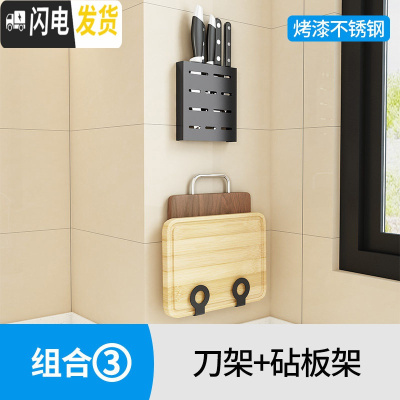 厨房免打孔壁挂置物架黑色不锈钢砧板菜板夹筷子笼刀架挂杆调味架 三维工匠