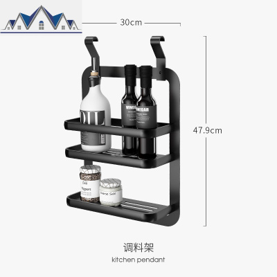 太空铝厨房置物架壁挂式墙上用品调味料架子挂杆锅盖架刀架黑色 三维工匠