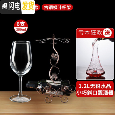 三维工匠红酒杯套装家用6只装欧式水晶玻璃葡萄酒醒酒器创意2个 [家庭套装]雅致款350-6只-+小巧斜口+多功能杯架