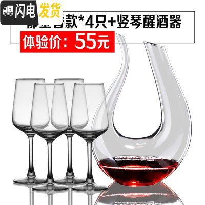 三维工匠家用 红酒杯葡萄酒杯 高脚杯 玻璃杯醒酒器 红酒杯酒杯架酒具套装 劲爆体验价郁金香4只+竖琴醒酒器