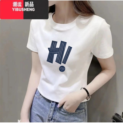 YIBUSHENG正肩修身百搭别致短袖T恤女2024季新款圆领打底衫体恤上衣