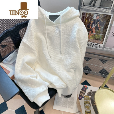 YANXU美式潮牌oversize华夫格连帽卫衣男女别致小众独特加绒外套