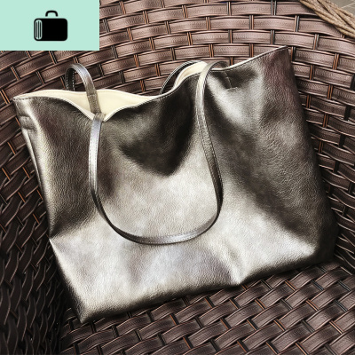春夏欧美大容量单肩包软皮单肩大包时尚手提包街头女包沙滩银NEW LAKE女士单肩包