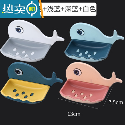敬平肥皂盒创意个性可爱儿童卡通壁挂免打孔沥水卫生间香皂置物架 壁挂鲸鱼4个-四色各一
