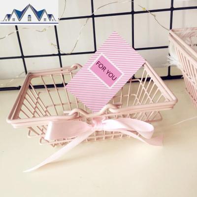 ins少女心粉色蝴蝶结铁艺迷你购物篮收纳篮桌面摆件摆拍道具 三维工匠