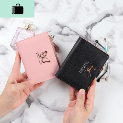 卡包钱包一体女士短款新款韩版超薄小清新学生拉链搭扣折叠零钱夹NEW LAKE