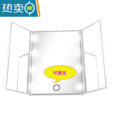 敬平LED三折镜 带灯折叠梳妆镜子LED化妆镜台式收纳便携镜子三面镜 白色带灯便携式用镜