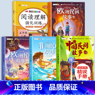 [5本]快乐读书吧5上+阅读理解强化训练 [正版]中国民间故事五年级上册快乐读书吧的欧洲民间故事非洲民间故事大全小学阅读