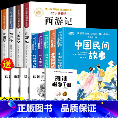 [全9册]读书吧五上+读书吧五下全套 [正版]中国民间故事五年级上册必读的课外书快乐读书吧全套4册老师欧洲民间故事非洲民