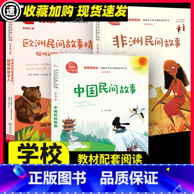 8册[5上读书吧+学霸笔记语数/英/语] [正版]全5册 中国民间故事欧洲民间故事非洲民间故事列那狐的故事完整版 五年级
