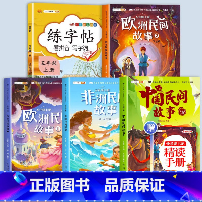 [5本]快乐读书吧5上+练字帖 [正版]中国民间故事五年级上册快乐读书吧的欧洲民间故事非洲民间故事大全小学阅读课外书下册