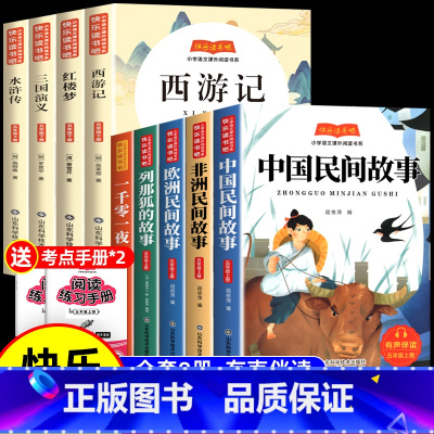 [8册 赠手册]五年级上册+下册 [正版]中国民间故事五年级上册课外书快乐读书吧全套4册老师阅读书目欧洲非洲民间故事列那