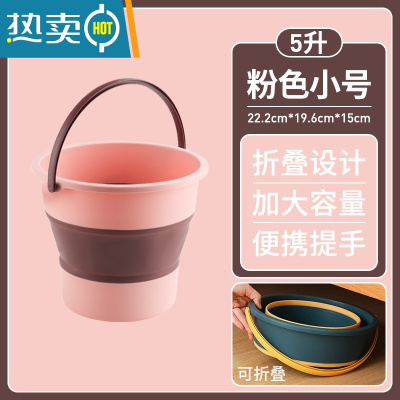 敬平折叠桶水桶户外钓鱼桶大小号车载旅行洗车桶家用便携式加厚塑料 折叠款-小号[浅粉5L] 可装10斤