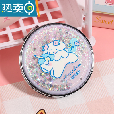 敬平芙芙狗可爱梦幻流沙小镜子随身镜少女心双面化妆镜便携小号折叠 阿兔兔-B便携式用镜