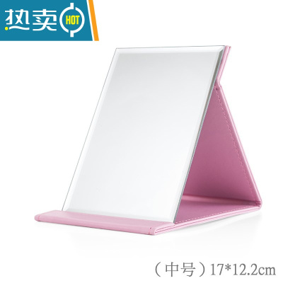 敬平网红镜子化妆镜折叠台式便携随身高清学生宿舍女大小号桌面梳妆镜 中号[粉色]便携式用镜