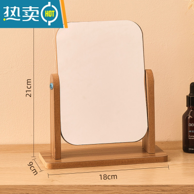 敬平化妆桌面镜台式木质女小号家用单面梳妆台学生宿舍卧室镜子可旋转便携式用镜 木质方形小号-360°可旋转