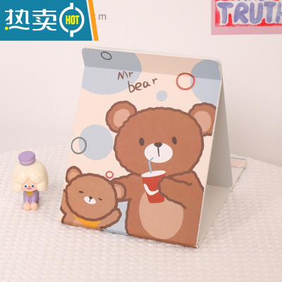 敬平折叠台式镜子化妆镜桌面简约可爱小号学生宿舍创意便携纸质梳妆镜 米黄三只熊便携式用镜