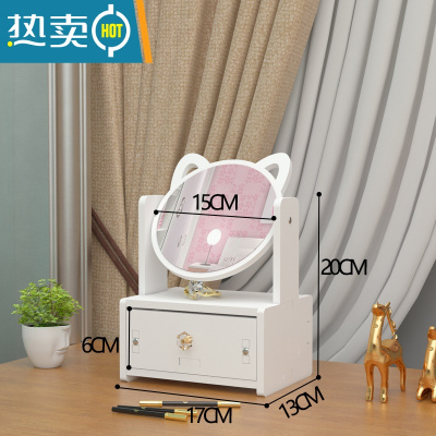 敬平镜子化妆镜折叠台式便携随身高清学生宿舍公主女大小号桌面梳妆镜 猫耳朵单抽屉便携式用镜