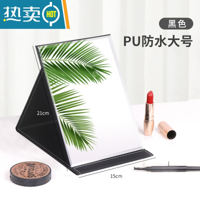 敬平镜子化妆镜折叠台式便携式高清学生宿舍公主女大小号桌面梳妆镜便携式用镜 PU防水大号[黑色]