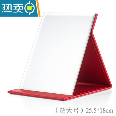 敬平镜子化妆镜折叠台式便携随身高清学生宿舍公主女大小号桌面梳妆镜 特大号[红色]便携式用镜