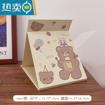 敬平网红镜子ins台式化妆镜女学生宿舍桌面折叠便携大小号随身梳妆镜 绿 bear熊便携式用镜