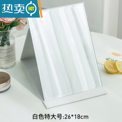 敬平镜子化妆镜折叠台式便携随身高清学生宿舍公主女大小号桌面梳妆镜便携式用镜 特大号[白色]