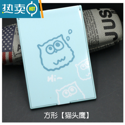 敬平镜子折叠小号日式随身化妆塑料高清镜便携式学生宿舍梳妆单面小镜便携式用镜 方形[猫头鹰]