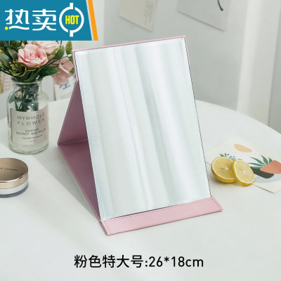 敬平镜子化妆镜折叠台式便携随身高清学生宿舍公主女大小号桌面梳妆镜 特大号[粉色]便携式用镜