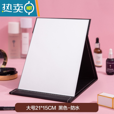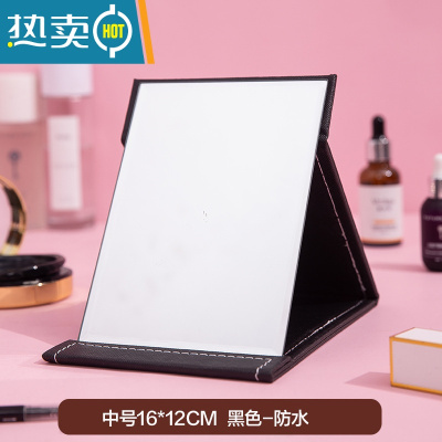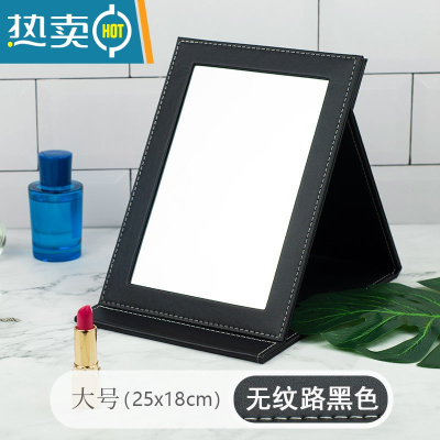 敬平高清PU皮革台式学生女生宿舍公主梳妆便携随身折叠化妆镜子大小号 大号 无纹路黑色(镜面加厚)便携式用镜