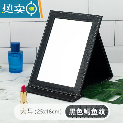 敬平高清PU皮革台式学生女生宿舍公主梳妆便携随身折叠化妆镜子大小号 大号 黑色鳄鱼纹(镜面加厚)便携式用镜